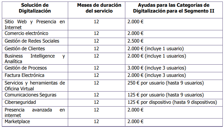 OBJETO: Kit Digital es un programa de ayudas del Plan de Recuperación en concurrencia no competitiva que tiene como objetivo la adopción de soluciones de digitalización cuyo fin sea sustituir a las soluciones ya adoptadas por el beneficiario, siempre que supongan una mejora funcional. El programa proporcionará a las empresas un bono de digitalización que podrán utilizar para adoptar soluciones digitales ya disponibles en el mercado. Estas soluciones digitales serán ofrecidas por los agentes digitalizadores que suscribirán acuerdos de colaboración con los beneficiarios de las ayudas del programa y los acompañarán en sus procesos de transformación digital. PRESUPUESTO DE LA CONVOCATORIA Y TIPO DE AYUDA: 500 M€. SUBVENCIÓN BENEFICIARIOS Y CONDICIONES: